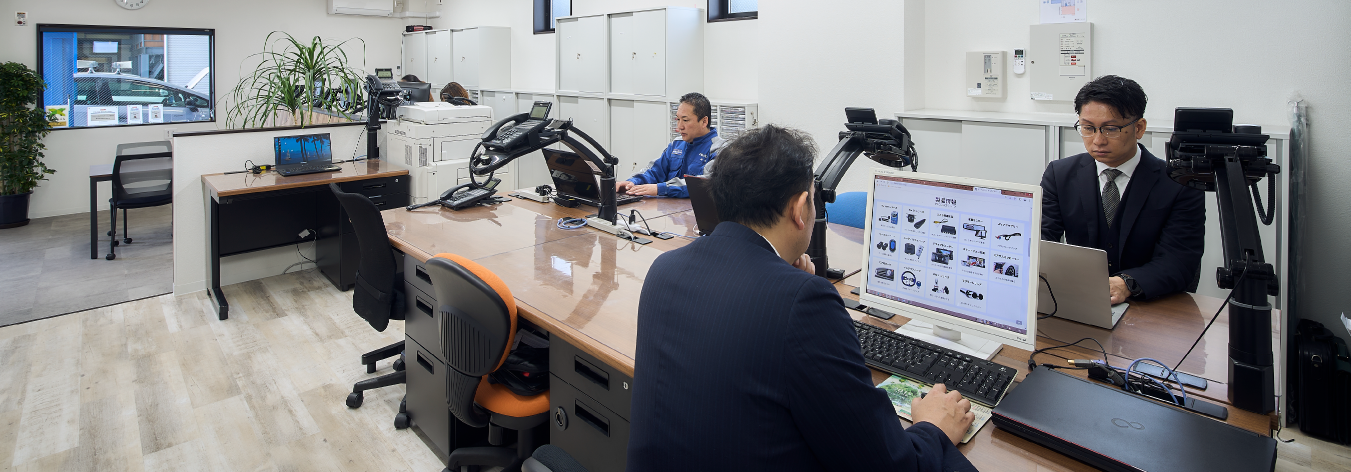 昭和45年(1970年)には、株式会社デンソーと指定サービスステーション契約を結び、今日に至るまで県内有数のデンソーダイアグステーションとして、車両の高度化に対応できる設備、人材、情報という新たな機能を具備し、製品単体の診断・修理だけでなく、高度化するクルマの電子制御システム情報を解析し、故障部位を特定することにより、迅速なサービスとCS向上に貢献してまいりました。その中でも故障診断技術のスペシャリストであるデンソーダイアグマイスター2名の在籍は当社の強みと言えます。